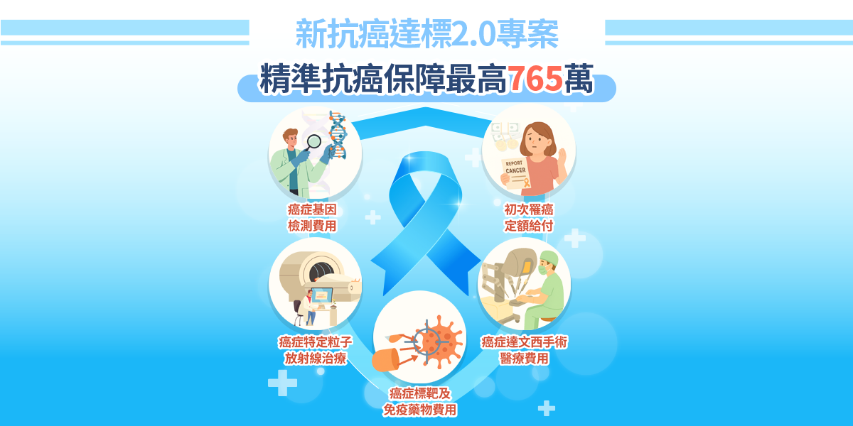 經醫院醫師診斷確定初次罹癌並於中華民國境內接受保單條款藥物清單所列「標靶藥物(含部分免疫藥物)治療」時,提供最高500萬的用藥額度。